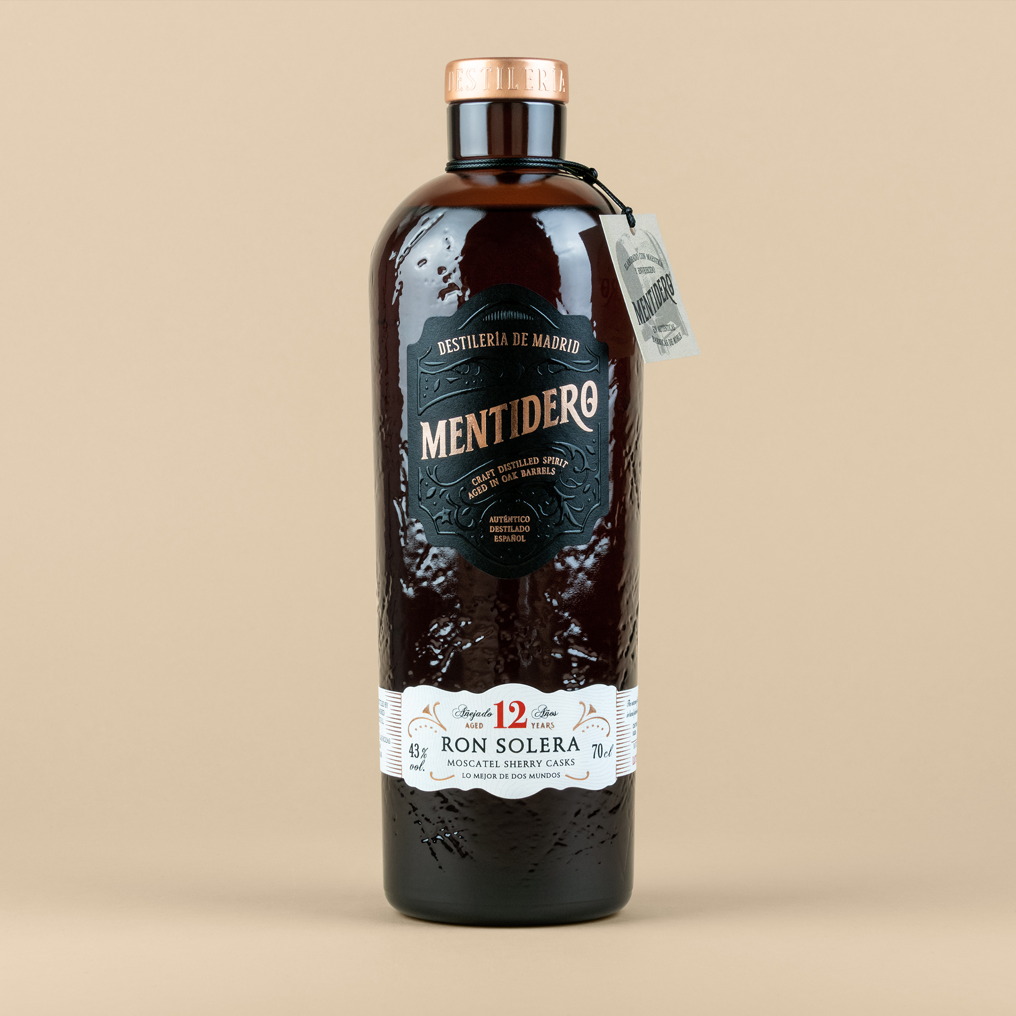 Mentidero Solera 12 años es un ron de calidad excepcional, elaborado en Madrid de manera artesanal en partidas limitadas de 996 botellas numeradas.